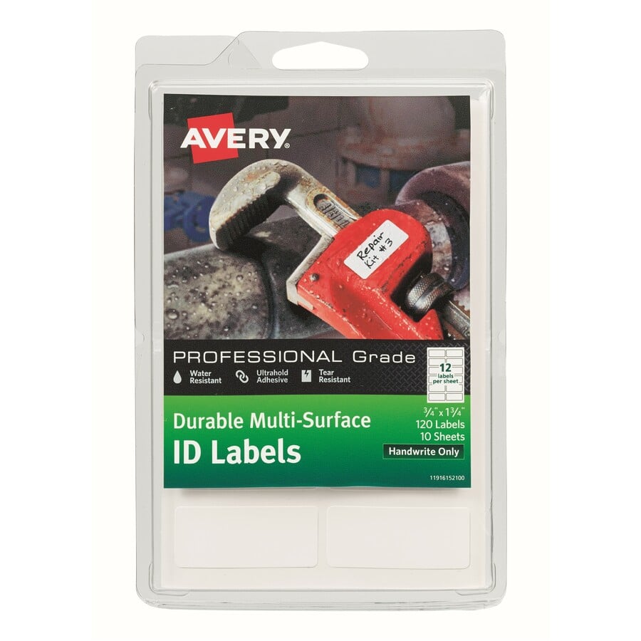 Avery® ID Labels – Permanent Adhesive – Rectangle – White – Film – 12 / Sheet – 10 Total Sheets – 120 Total Label(s) – 3 – Water Resistant