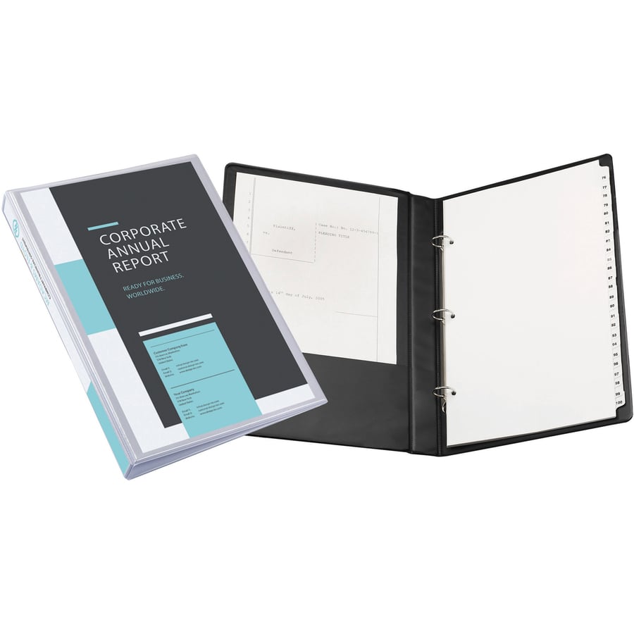 | Marketing Information | Durable view binder is perfect for frequent reference, proposals and presentations. Wide front and back panels fully cover standard dividers and sheet protectors. Overlays on front, spine and back allow easy customization. 1" ring capacity accommodates approximately 175 sheets of 8-1/2" x 14" (21.59cm x 35.56cm) paper. Two interior pockets hold loose documents. <p><a id="gfk-spex-minisite" rel="nofollow" href="javascript:void(0)" onclick="javascript:window.open('//content.etilize.com/mini-site/en_us/1021538076.html', '_blank', 'height=800, width=780, resizable=yes, scrollbars=yes, toolbar=no, menubar=no, location=no, directories=no, status=no'), return false, ">More from the Manufacturer</a></p> |