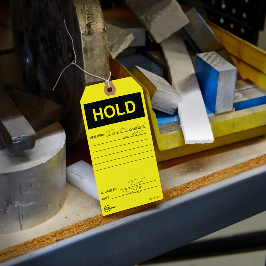 | Marketing Information | <p>Hold tags are an integral part of your quality control program to ensure defective items are managed correctly. Preprinted with the word, "HOLD, " they are designed for efficiency, convenience and performance. Vibrant, color-coded, quality control tags allow workers to easily identify items at a glance. Made of sturdy, cardstock with reinforced holes, they feature a bold color and a smooth, smear-resistant surface. Surface is easy to write on with common marking tools. They come pre-strung with 12" of cotton twine so no need to string tags before work can begin. Convenient, hang-hole packaging doubles as a tag dispenser for easy organizing.</p> |