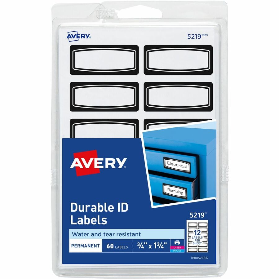 | Marketing Information | <p>ID labels stick, stay and remove cleanly to make changes and revisions. The rectangular shape makes them ideal for binders, diskettes, file folders, cassettes, drawers, containers, boxes, shelves and more. Labels adhere to smooth surfaces, including paper, cardboard, plastic, wood, glass and metal. Labels are compatible with laser and inkjet printers. Avery offers many easy-to-use templates for Microsoft and many other popular software programs.</p> |