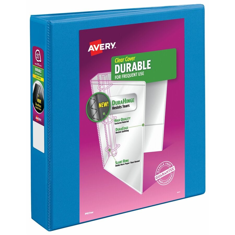 | Marketing Information | View binder features a bright two-tone color combination that offers more fun for back to school. Durable construction is ideal for frequent referencing. DuraHinge design is stronger, lasts longer and resists tearing, and the DuraEdge feature makes the sides and top more pliable to resist splitting. Deep-texture film offers a smoother finish and features a linen pattern for high-quality look and feel. Students can easily customize the clear binder cover with free online templates and designs. Two-tone interior features four pockets to help organize loose papers while the slant rings hold more sheets than the same-size round rings to maximize space for class materials. The 2" size holds up to 500 sheets. <p><a id="gfk-spex-minisite" rel="nofollow" href="javascript:void(0)" onclick="javascript:window.open('//content.etilize.com/mini-site/en_us/1065692882.html', '_blank', 'height=800, width=780, resizable=yes, scrollbars=yes, toolbar=no, menubar=no, location=no, directories=no, status=no'), return false, ">More from the Manufacturer</a></p> |