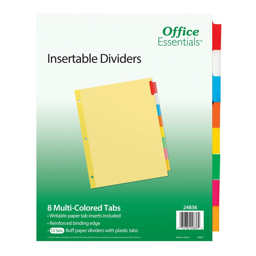 | Marketing Information | Economical dividers serve a variety of binder organization needs. They are made of buff-colored paper and feature convenient, insertable plastic tabs. Included tab inserts are not printer compatible, but you write on them to identify your headers. Three-hole punched binding edge is reinforced for durability. <p><a id="gfk-spex-minisite" rel="nofollow" href="javascript:void(0)" onclick="javascript:window.open('//content.etilize.com/mini-site/en_us/1065580225.html', '_blank', 'height=800, width=780, resizable=yes, scrollbars=yes, toolbar=no, menubar=no, location=no, directories=no, status=no'), return false, ">More from the Manufacturer</a></p> |