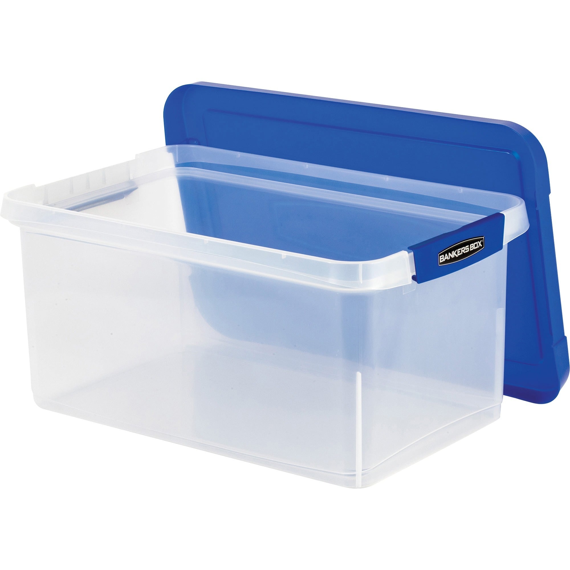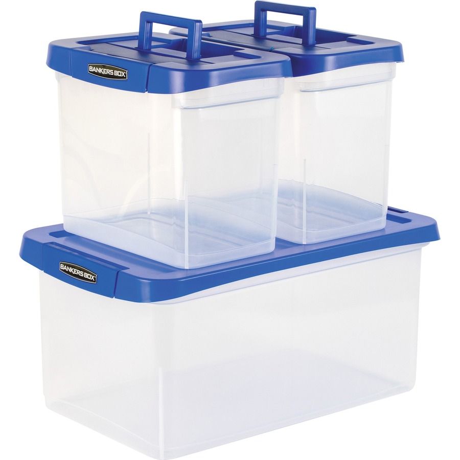 Bankers Box Heavy-Duty File Box – External Dimensions: 14.2″ Width x 22.4″ Depth x 10.6″ Height – Media Size Supported: Letter 8.50″ x 11″ – Lid Lock Closure – Stackable – Plastic, Polypropylene – Clear, Blue – For File, Document, Storage – 1 Each – TAA Compliant