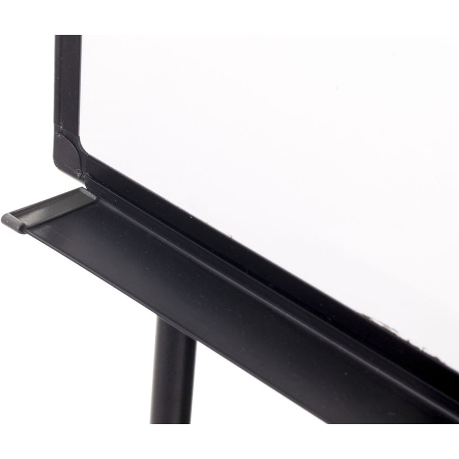 | Marketing Information | <p>Double-sided easel with an aluminum frame is versatile enough for use in any setting. Magnetic dry-erase surface is smooth and durable to quickly wipe down and allow frequent, everyday use. Its adjustable design allows you to easily change the height of either board to present information at a comfortable viewing level. Fully adjustable pad clamps accommodate any size easel pad (sold separately). 2" easy-glide casters offer complete mobility and are lockable to keep it secure on smooth surfaces.</p> |