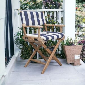 Sit like a true maestro in the black and brown solid wood director chair with black cushion, empowering you to orchestrate your surroundings with grace and authority. Allow the mesmerizing brown color to become a work of art, leaving a lasting impression that beautifully embodies your individuality. Complete with stylish black colored cushions covered with long lasting and durable acrylic, this chair will add a clean and modern touch to your space. Arms give this chair shape and definition and make it a good looking and comfortable option. The addition of this chair to your space will allow you to sit back, relax, and enjoy all the great outdoors has to offer. 33.5-inch H x 23-inch W x 17.5-inch D