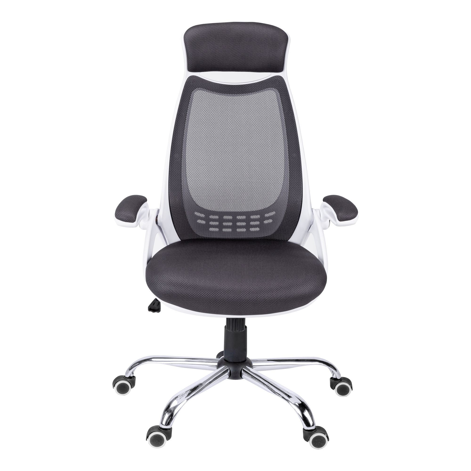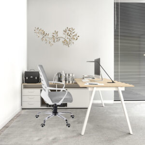 This comfy office silver chair frame is made of a heavy duty, sturdy plastic material, providing reliable support and stability. Includes a mesh back fabric designed for optimal air circulation and comfort The seat is height adjustable, so you can customize it how you like. No one keeps their arms in the same position all day. This armed office chair features easily adjustable arms that can move with throughout the day. Furnish you office or home office in comfort and style with this high quality office chair. 93.75″ H x 23.75″ W x 28″ D
