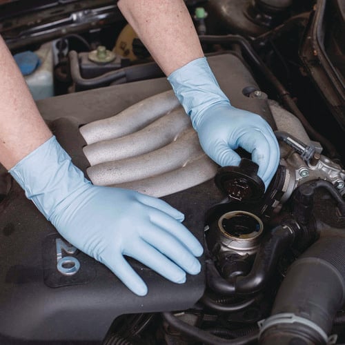 Gloveworks® Exam Blue Nitrile Gloves feature an extended cuff-longer than a standard glove-to offer greater protection over your forearm and wrist from bodily fluids, bloodborne pathogens, and contaminants. They are more than twice as thick as standard nitrile gloves for heavy-duty jobs. M-XL, sold 50 per box, 10 boxes per case.