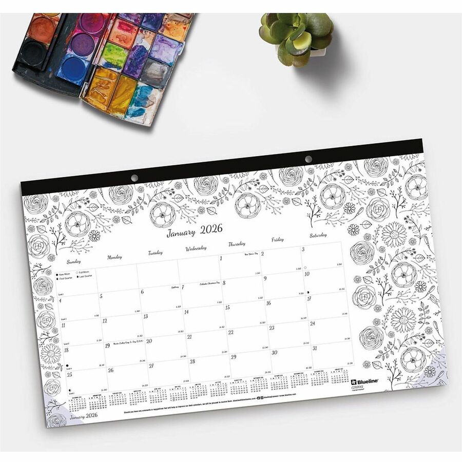 Blueline DoodlePlan Compact Desk Pad – Botanica – Monthly – January 2021 till December 2021 – 1Month Single Page Layout – Desk Pad – White – Chipboard – Tear-off, Notes Area, Eco-friendly, Eyelet – 17-3/4″ x 10-7/8″
