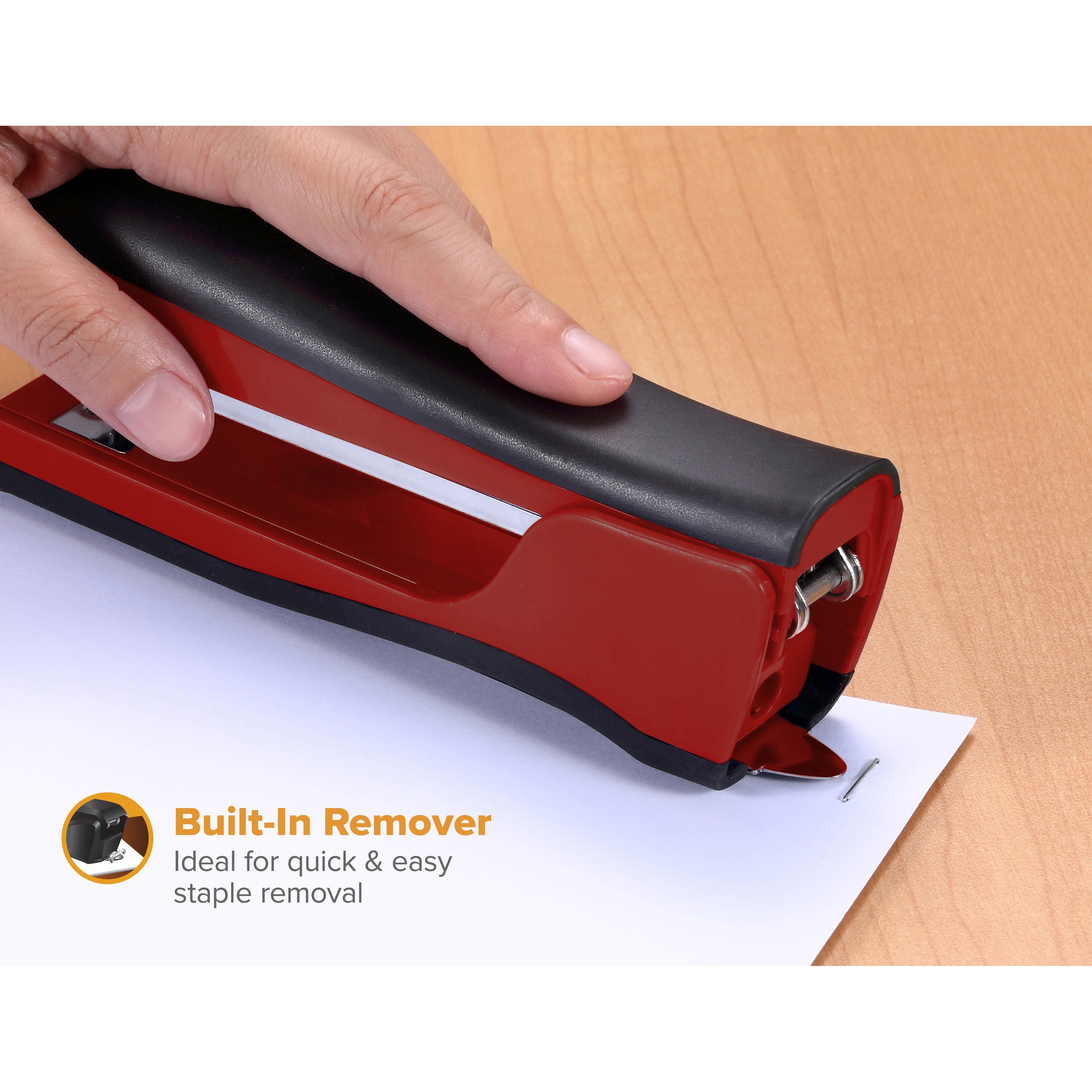 Bostitch Dynamo Stapler – 20 of 20lb Paper Sheets Capacity – 210 Staple Capacity – Full Strip – 1/4″ Staple Size – Red