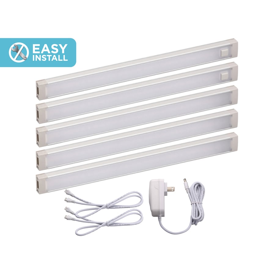 | Marketing Information | <p>LED Under Cabinet Lighting Kit features a quick, reliable installation process without requiring tools. Ultra-thin, linkable design provides a warm color temperature at 2, 700 Kelvin. Touch-free activation helps reduce the spread of germs. Optional, 3-hour, automatic shutoff helps save energy. Dimmer button provides 10 brightness levels with 360 lumens per bar for customizable lighting. Cost-efficient, PureOptics LEDs last up to 50, 000 hours and use 85 percent less energy than incandescent lights. Bar illuminates a soft, warm white, flicker-free light zone in kitchens, bathrooms, laundry rooms, closets and more. These 9" bars use a linkable design to conveniently connect all five bars. Kit includes five light bars, jumper wires, mounting clips and an AC adapter for easy installation.</p> |