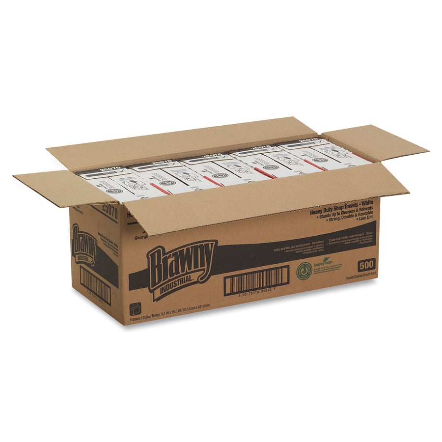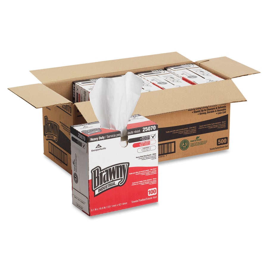 Brawny® Professional H700 Disposable Cleaning Towels – 9.10″ x 16.50″ – White – Pulp Fiber – Durable, Soft, Tear Resistant, Strong, Reusable, Low Linting, Sturdy, Abrasion Resistant, Absorbent, Chemical Resistant – For Industry – 100 Per Box – 5 / Carton