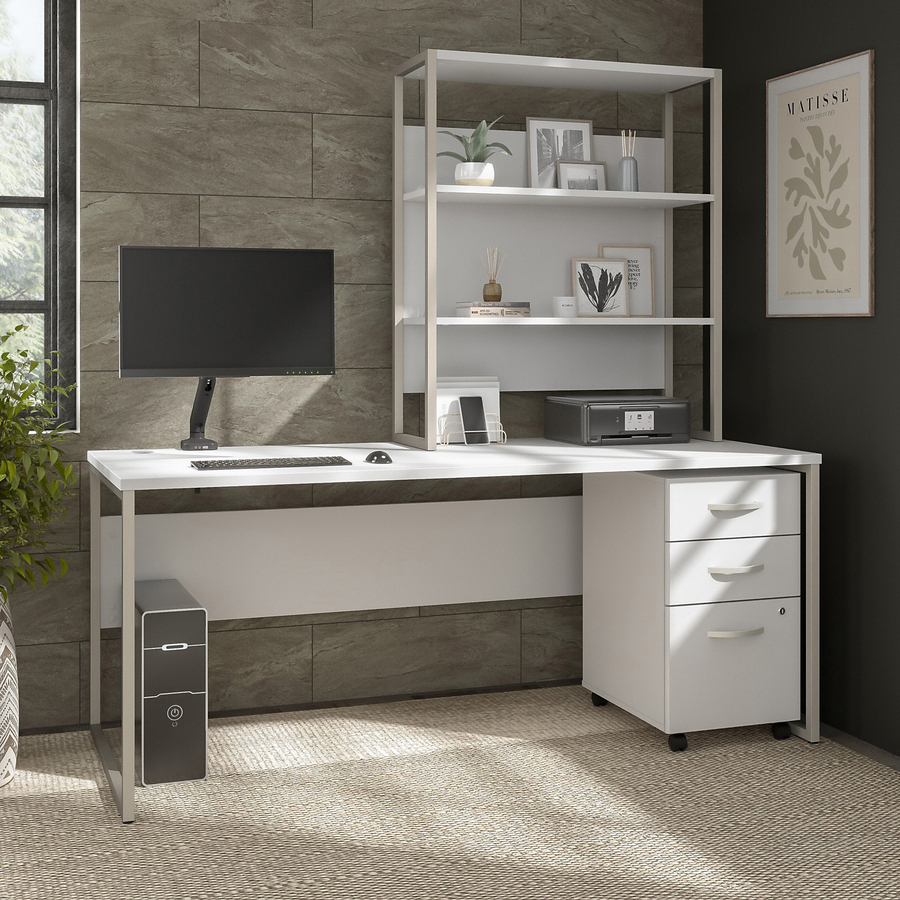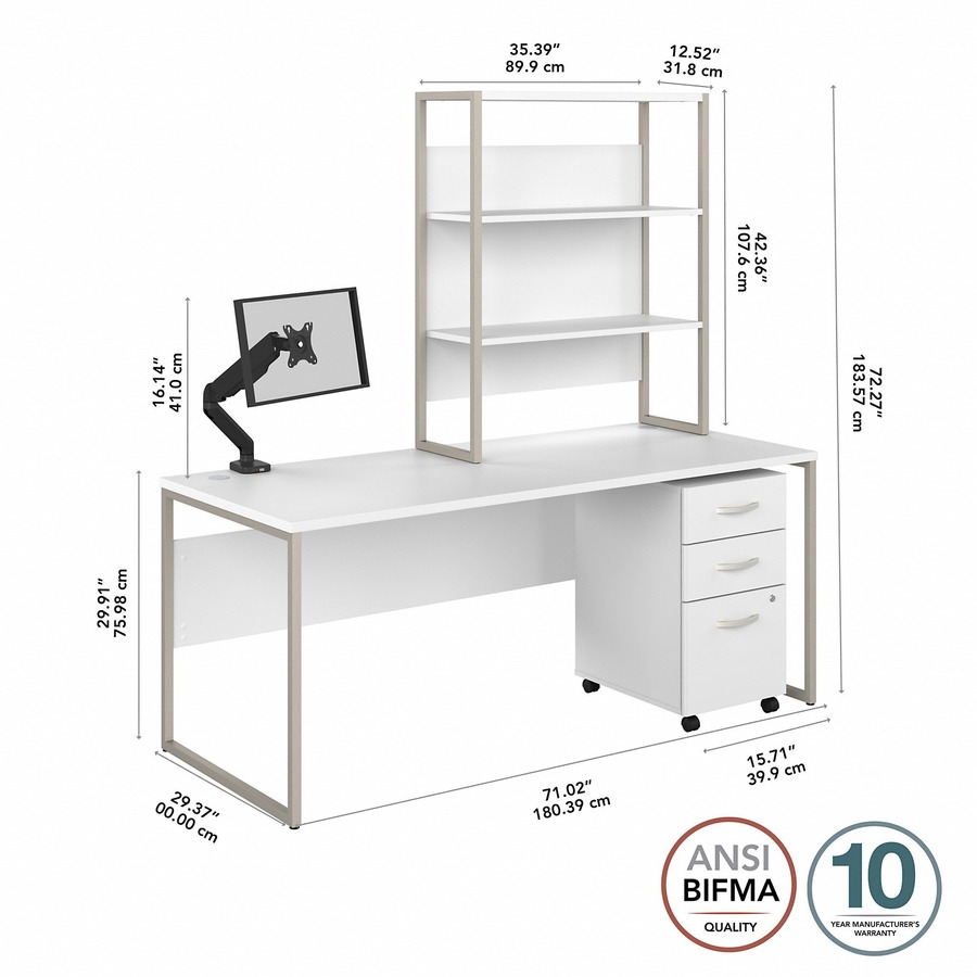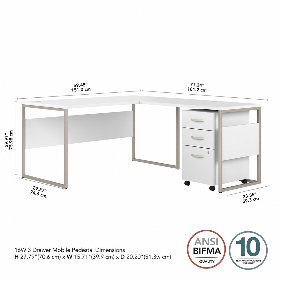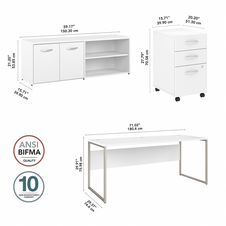Bush Business Furniture Hybrid Collection White Desking – 29.4″ x 71″ x 29.9″ – File Drawer(s) – Finish: White