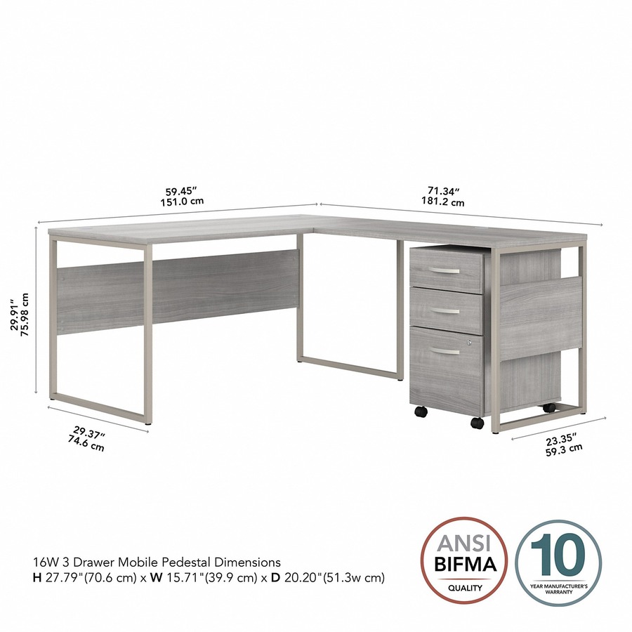 Bush Business Furniture Hybrid Platinum Gray Desking – 29.4″ x 71″ x 29.9″ – File Drawer(s) – Finish: Platinum Gray