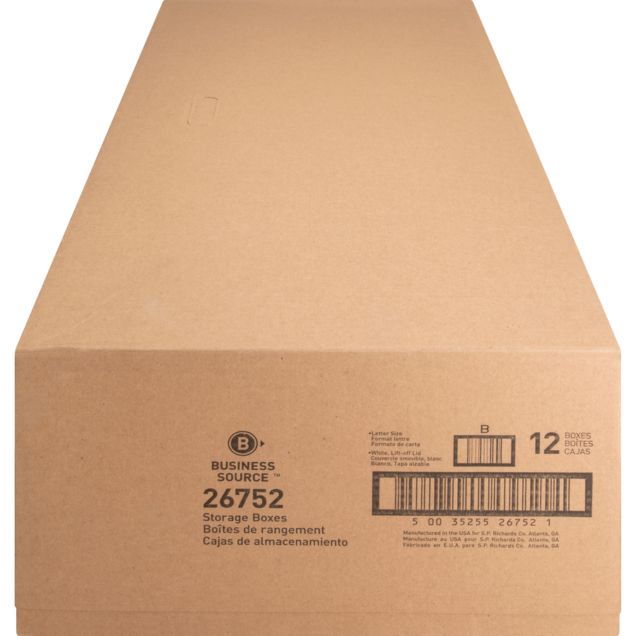 Business Source Lift-off Lid Light Duty Storage Box – External Dimensions: 12″ Width x 24″ Depth x 10″Height – Media Size Supported: Letter – Lift-off Closure – Light Duty – Stackable – Cardboard – White – For File – Recycled – 12 / Carton
