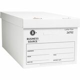 Business Source Lift-off Lid Light Duty Storage Box – External Dimensions: 15″ Width x 24″ Depth x 10″Height – Media Size Supported: Legal – Lift-off Closure – Light Duty – Stackable – Cardboard – White – For File – Recycled – 12 / Carton