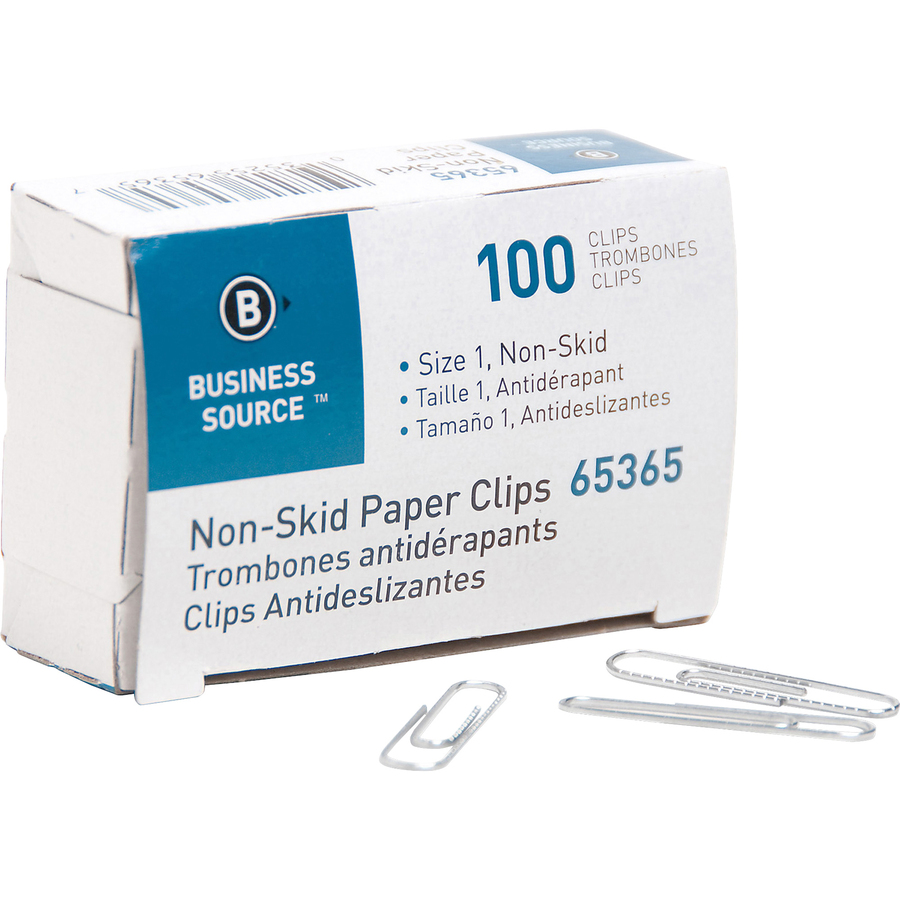 Business Source Non-Skid Paper Clips – Regular – No. 1 – 1.8″ Length x 0.5″ Width – 1000 / Pack – Silver – Steel