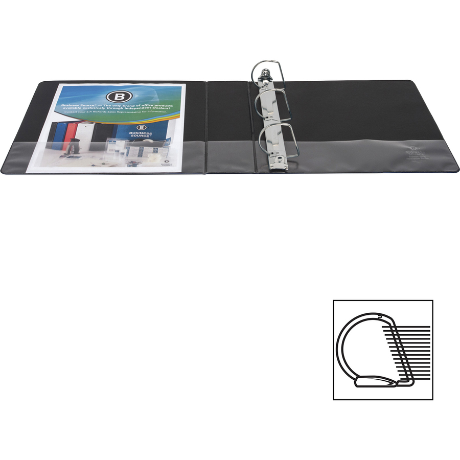 Business Source Slanted D-ring Binders – 5″ Binder Capacity – Letter – 8 1/2″ x 11″ Sheet Size – 3 x D-Ring Fastener(s) – 2 Internal Pocket(s) – Chipboard, Polypropylene – Black – PVC-free, Non-stick, Spine Label, Gap-free Ring, Non-glare, Heavy Duty, Open and Closed Triggers, Locking Ring, Durable, Label Holder – 1 Each