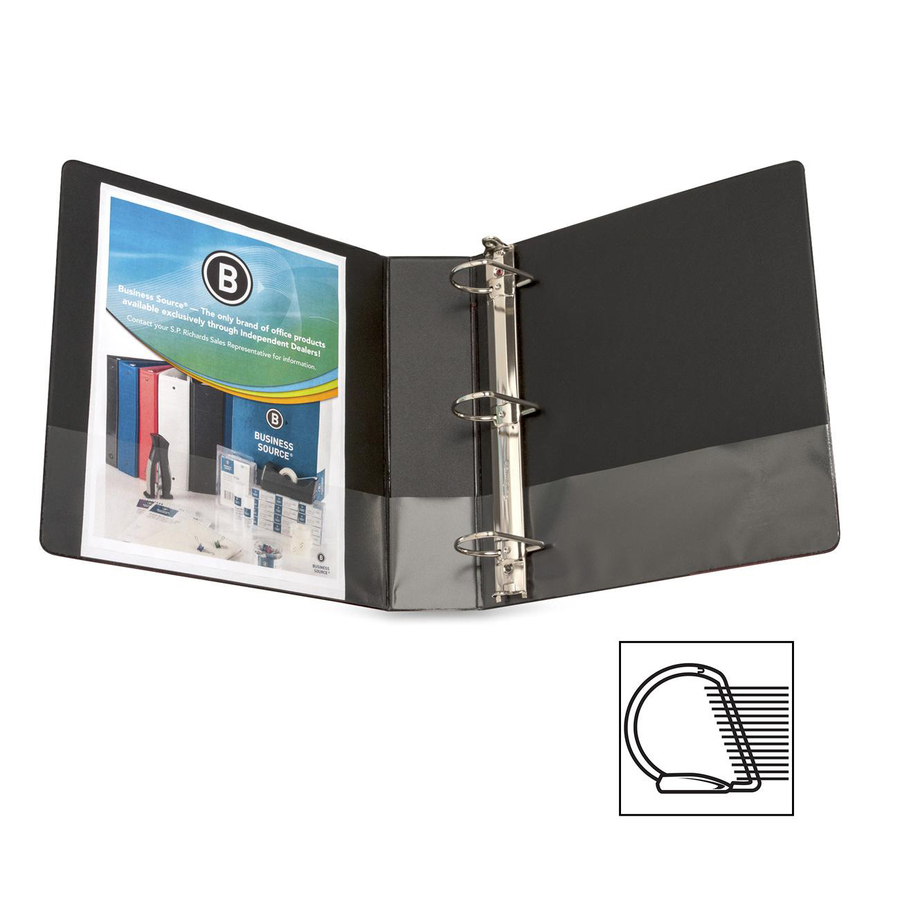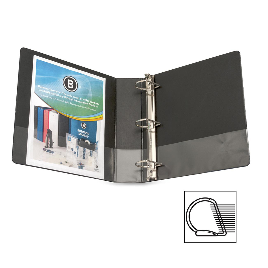 Business Source Slanted D-ring Binders – 1″ Binder Capacity – 3 x D-Ring Fastener(s) – 2 Internal Pocket(s) – Chipboard, Polypropylene – Black – PVC-free, Non-stick, Spine Label, Gap-free Ring, Non-glare, Heavy Duty, Open and Closed Triggers – 1 Each