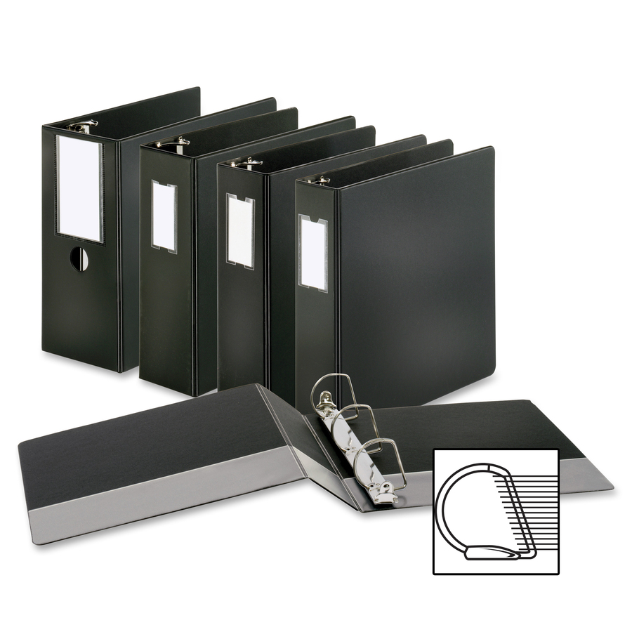 | Marketing Information | <p>Slant-D ring binder is designed for maximum sheet capacity. Locking rings are mounted on the back cover for lay-flat visibility and long-lasting durability. No-gap D-Rings stay tightly closed without gaps and hold 25 percent more paper than the same-size round rings. 5" capacity holds up to 1, 100 sheets. Nonglare CleanView cover and pocket material resist toner transfer so ink from printer papers won't stick or mark binder, leaving a clean impression over time. Three-ring binder also offers two clear interior pockets for additional document storage and double opening/closing boosters. Label holder on spine allows easy identification. Binder is made of polypropylene covering sturdy chipboard for durability.</p> |