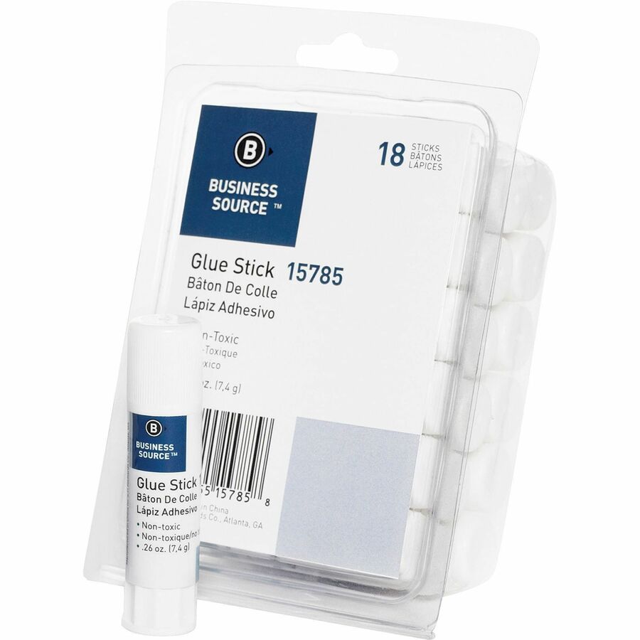 Business Source Value Pack Glue Sticks – 0.26 oz – 18 / Pack – White