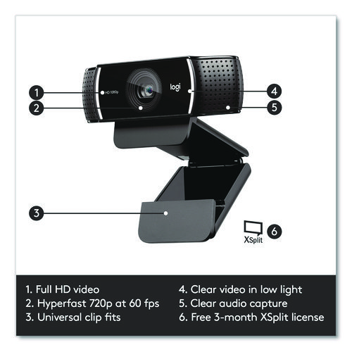 Live stream with outstanding clarity with the Logitech® C922 webcam, designed and built for streamers who take their game seriously. With a choice of 30 fps at 1080p or the hyperfast 60 fps at 720p, you can record or go live with vibrant, true-to-life video on channels like Twitch and YouTube. Broadcast masterfully with reliable no-drop audio, autofocus, and a 78° diagonal field of view. Two omni-directional microphones accurately capture your voice from multiple angles for greater nuance. Go pro with features for XSplit, or customize your stream with Logitech® Capture.Package Includes: Tripod