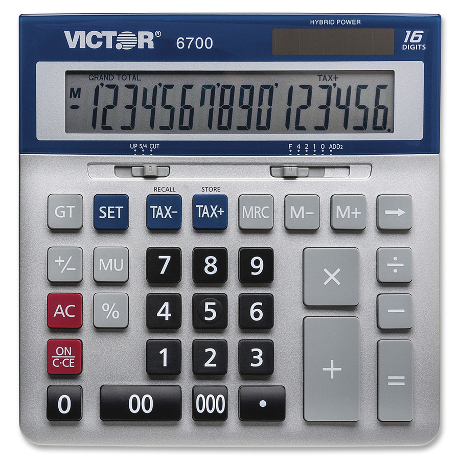 | Marketing Information | <p>Ideal for professional users, 12-digit desktop calculator is equipped with advanced functions, wide design, durable double-injection keytops and tilt-adjustable LCD. Functions include tax calculation, business calculation, grand total key, sign change, decimal point (+, 4, 3, 2, F), rounding, shift key and backspace key. Calculator also features a protective metal plate. Dual-power calculator automatically powers off after use and runs on solar and battery power.</p> |