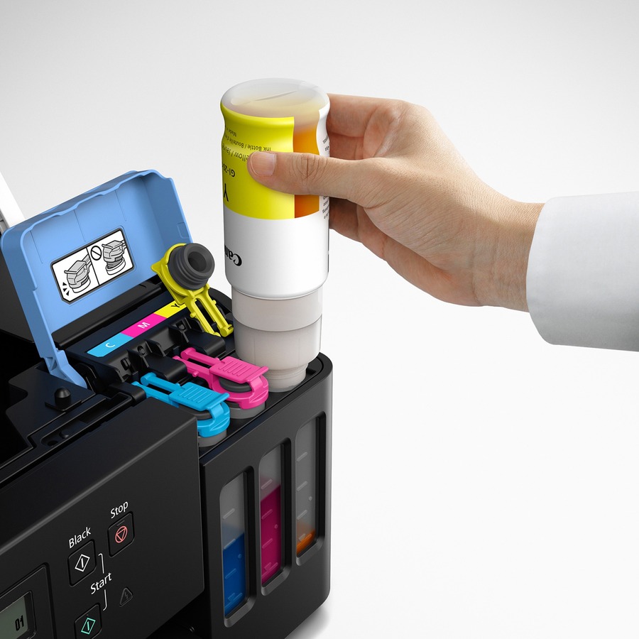 | Package Contents | <ul> <li>PIXMA G5020 Wireless MegaTank Single Function Printer</li> <li>4" x 6" Photo Paper Sample Pack (3 Sheets GP-701)</li> <li>Setup CD</li> <li>Manual and other documentation</li> <li>Full Set of Ink Bottles (PGBK, C, M, Y)</li> <li>2 x Bonus Black (PGBK) Ink Bottles</li> <li>Black Print Head</li> <li>Color Print Head</li> <li>Power Cord</li> </ul> |