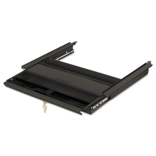 HON® METAL CENTER DRAWER WITH LOCK 19″”W CHARCOAL FINISH HON® DESK ACCESSORIES LET YOU SURROUND YOURSELF WITH PRODUCTIVITY. THIS METAL CENTER DRAWER LETS YOU ORGANIZE NEEDED SUPPLIES UNDER LOCK AND KEY. IT FITS UNDER ANY WORKSURFACE WITH 21-3/4″”W X 19-1/4″”D CLEARANCE. FINISH COLOR IS CHARCOAL. ANGLED DRAWER FRONT TO IMPROVE LEG CLEARANCE. DRAWER FRONT CAN BE SPECIFIED TO MATCH THE PAINT FINISH OF THE DESK. ADDS CONVENIENT PERSONAL STORAGE TO DESKS RETURNS CREDENZAS OR WORKSURFACES. PENCIL TRAY IS INCLUDED FOR QUICK ACCESS TO WRITING IMPLEMENTS. FINISH COLOR IS CHARCOAL.