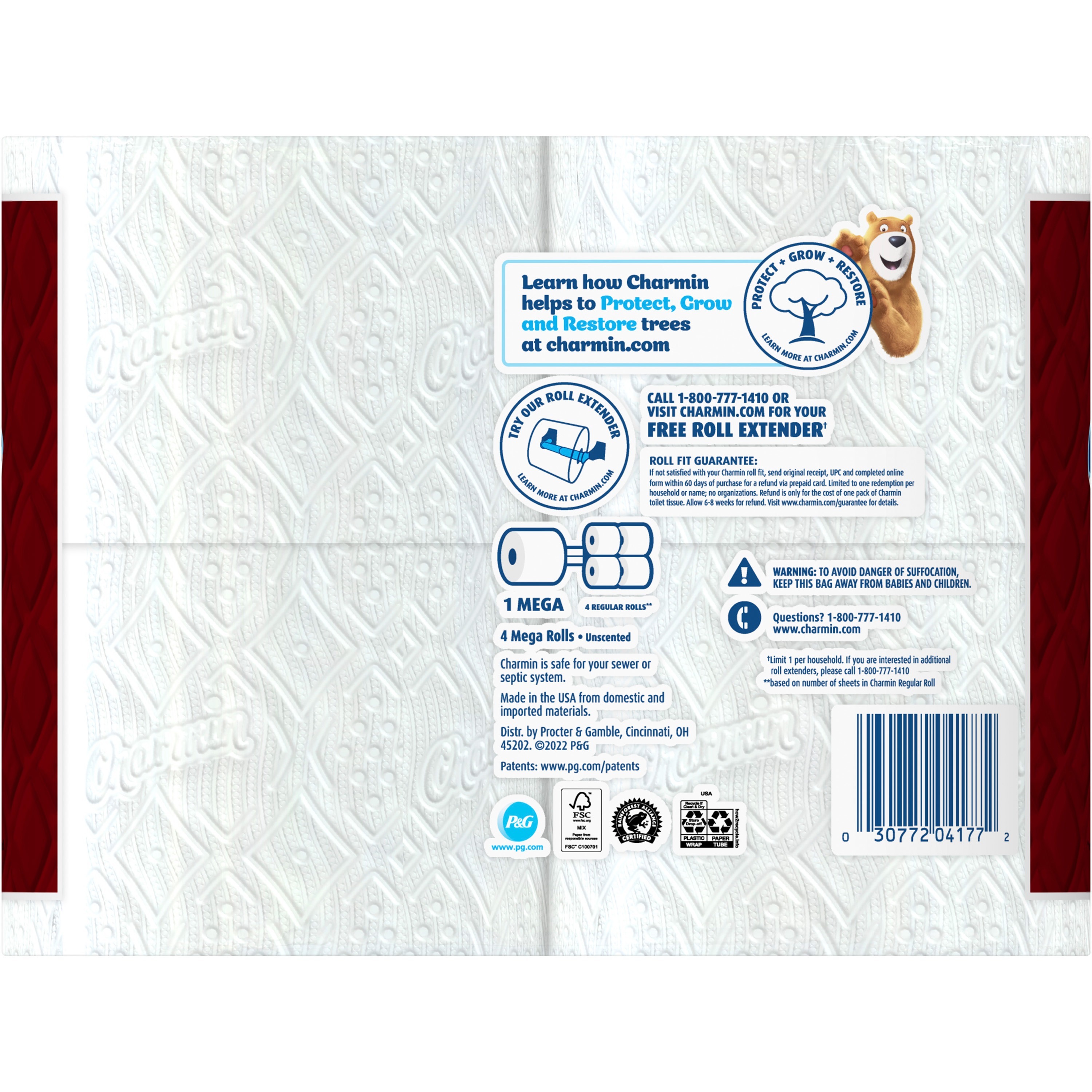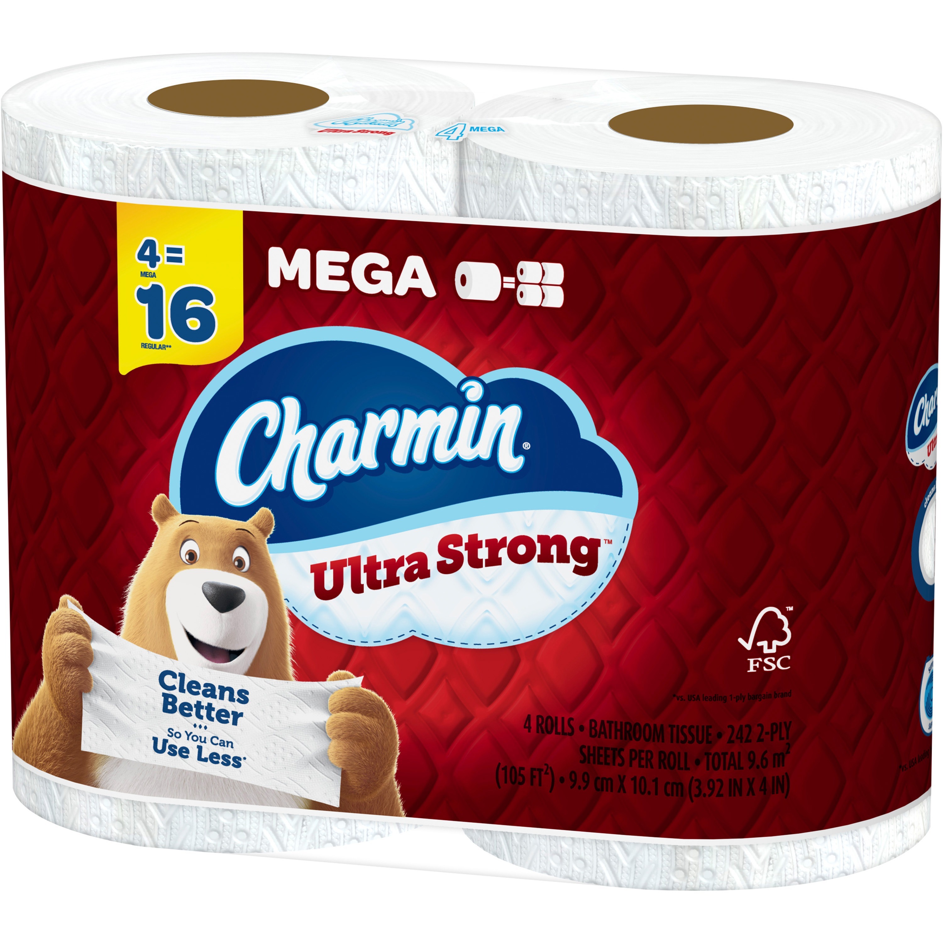 | Marketing Information | <p>Mega-roll bathroom tissue offers Ultra Strong innovation for superior cleaning. Charmin Ultra Strong is woven like a washcloth and cleans better than the leading bargain brand. Deeper texture of the two-ply tissue delivers a better clean. Omnidirectional strength makes the tissue stronger for better hand protection. It is four times stronger when wet than the leading bargain brand so you can use less. Optimized softness allows comfort at the higher wiping pressure. When you buy Charmin Ultra Strong Mega Roll toilet paper, you get a long-lasting roll because one Charmin Mega Roll equals four regular rolls. Tissue is clog-safe and septic-safe.</p> |
