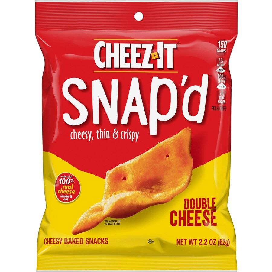 | Marketing Information | <p>More cheese? Yes, please. We've turned cheesy snacking up a notch with Cheez-It Snap'd Double Cheese Cheesy Baked Snacks. Don't let these thin and crispy snacks fool you. They're loaded with incredibly big cheese flavor. It comes from how we use 100% real cheese inside and out. First, we put real cheese into the recipe, then we bake each batch and sprinkle more real cheese on top. So you get Cheez-It Snap'd crackers that give you a deliciously satisfying flavor experience every time. Individually packed for convenience, each pouch makes it easy to enjoy the taste of real cheese during your day. Pack Snap'd crackers for lunch as a flavorful side to your sandwich. Stash them in your child's school lunch box or snack bag. Get the crunch that you want, plus the tasty flavor of real cheese that you crave, in every perfectly baked bite of Cheez-It Snap'd Double Cheese.</p> |