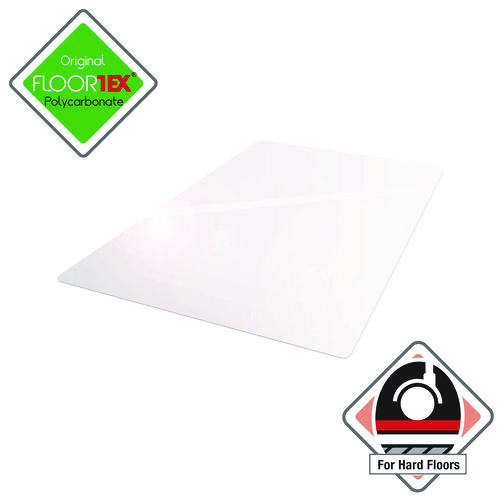 Floortex Original Polycarbonate chair mats provide the ultimate quality, durability and clarity. Twice the impact strength of vinyl to provide a perfect easy glide ergonomic surface for caster based chairs. Polycarbonate will not curl, crack, dimple, discolor or smell under normal use. High clarity allows the beauty of flooring to shine through. Manufactured using 25% renewable energy. Smooth back for hard floors.