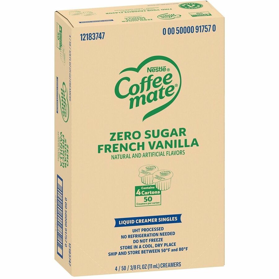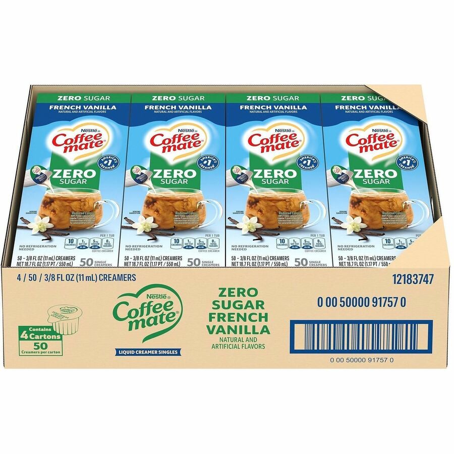 Coffee mate Sugar-Free Liquid Coffee Creamer Singles – French Vanilla Flavor – 0.38 fl oz (11 mL) – 4/Carton – 50 Per Box – 200 Serving