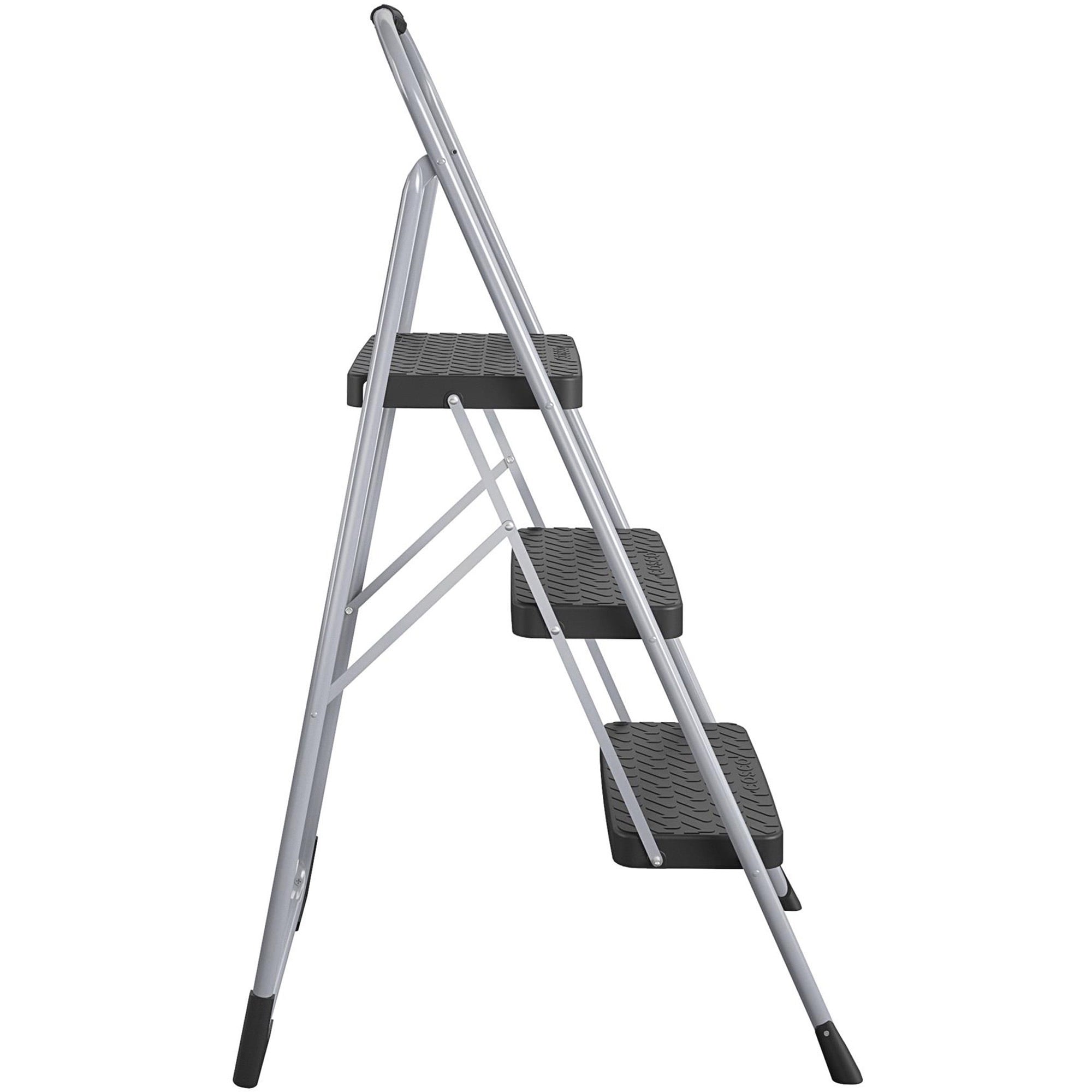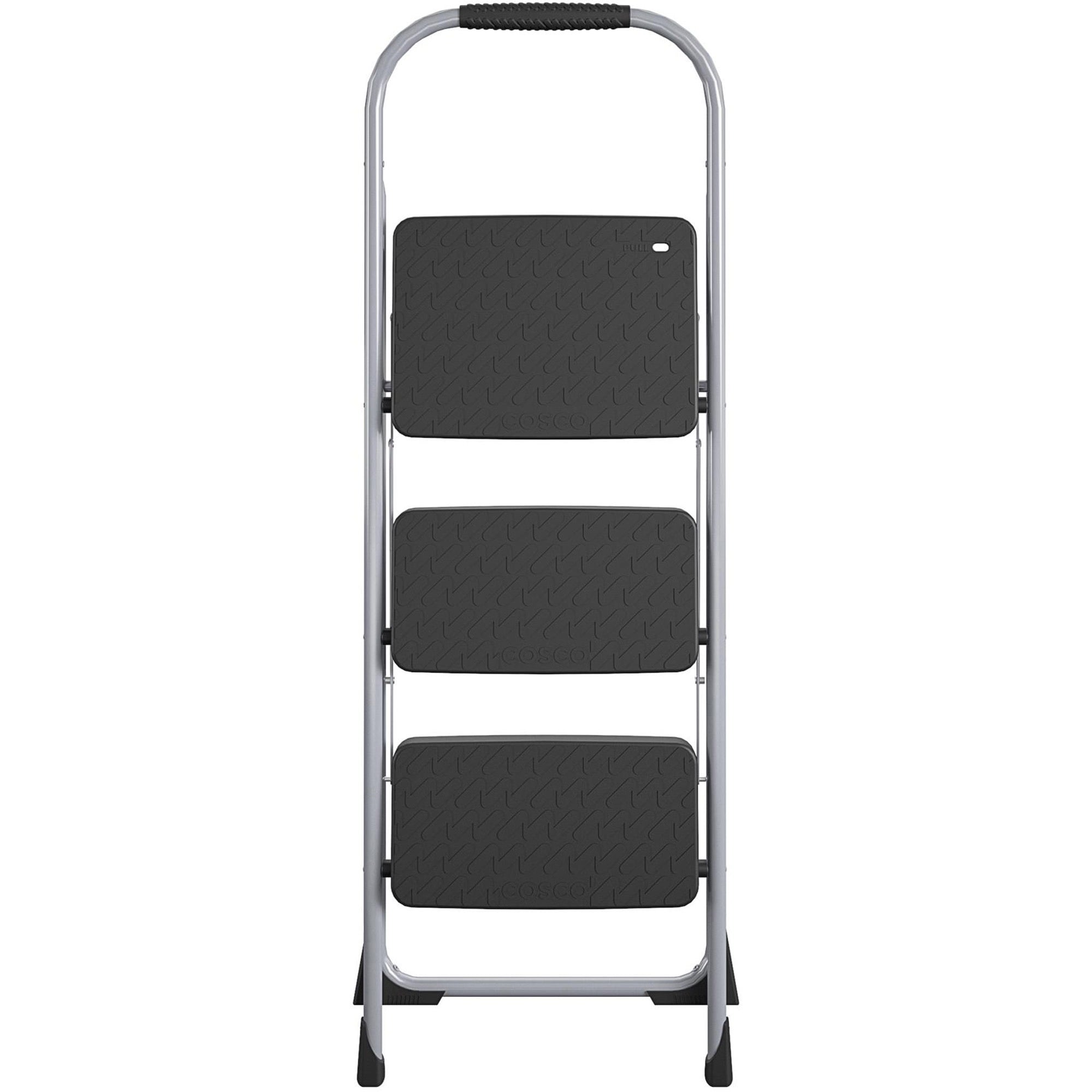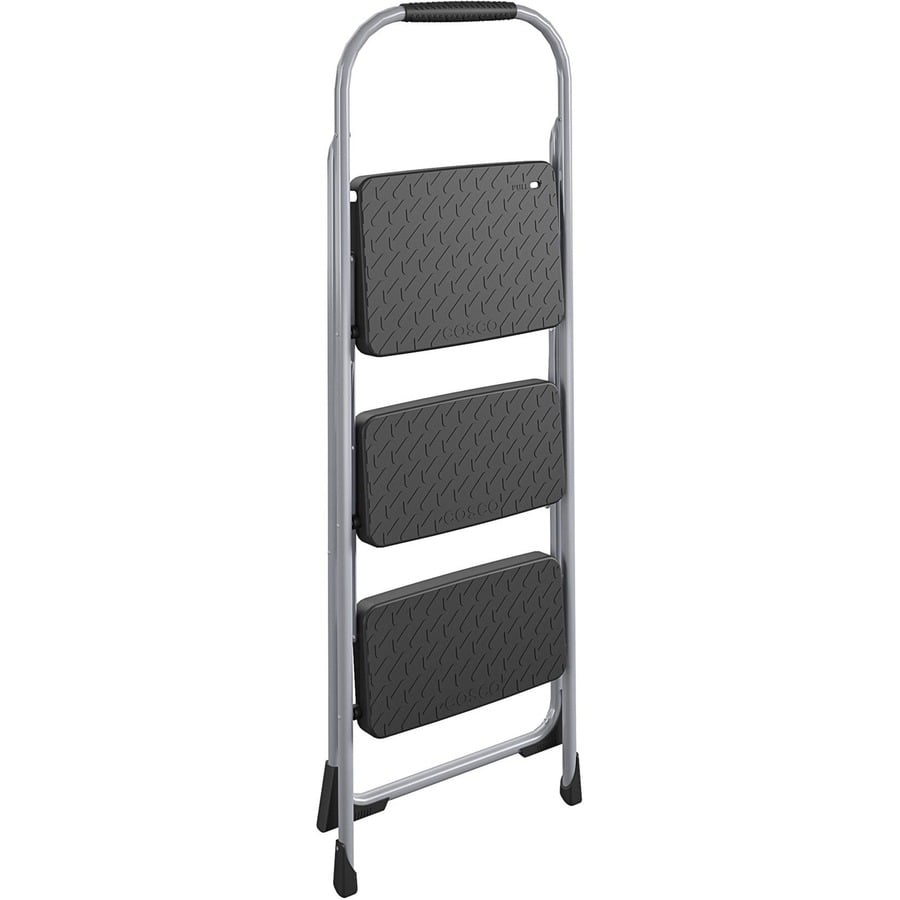 Cosco Ultra-Thin 3-Step Ladder – 3 Step – 200 lb Load Capacity52.8″ – Black, Platinum