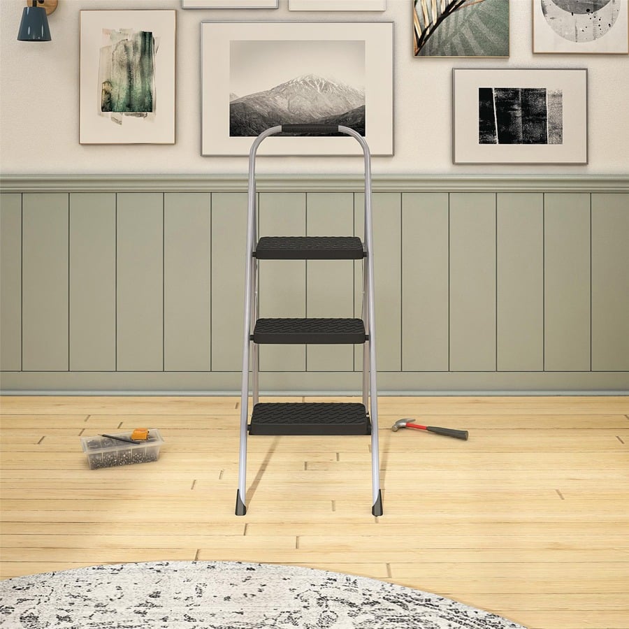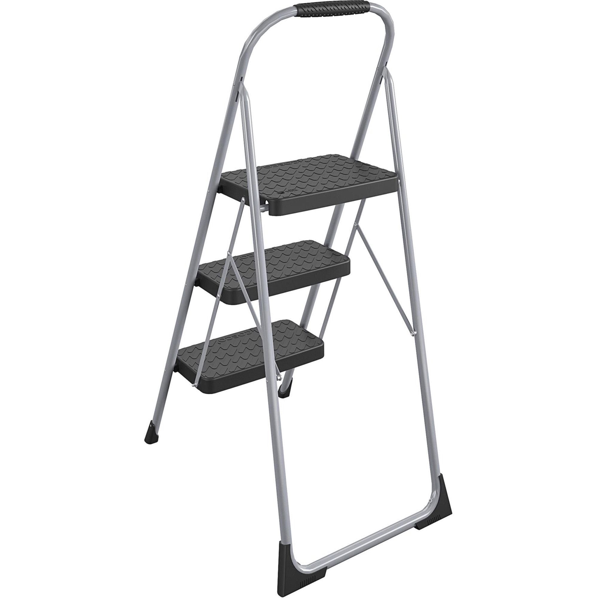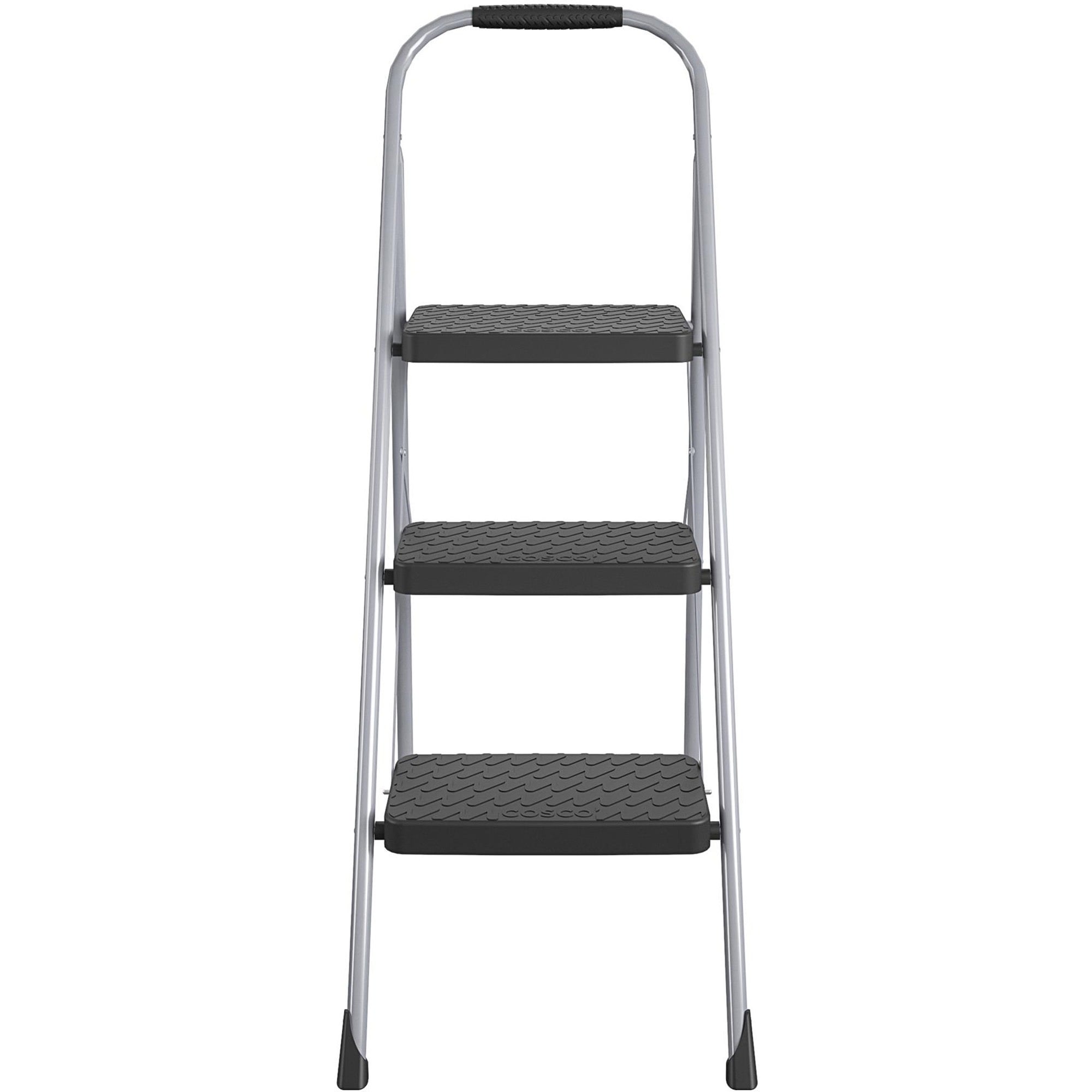 Cosco Ultra-Thin 3-Step Ladder – 3 Step – 200 lb Load Capacity52.8″ – Black, Platinum