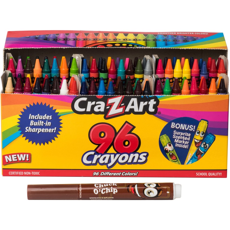 | Marketing Information | <p>School-quality crayons come in 96 different colors for endless creativity. Design and high quality deliver smoother drawing and brighter colors. Peggable box features a perforated top for easy access to all of the colors. The crayons are nontoxic for safe use.</p> |