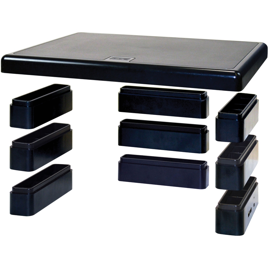 | Marketing Information | <p>Compact monitor riser includes two USB charging ports and a cable clip. It reduces strain on neck and eyes by raising your monitor to an ergonomically correct height. Strong riser is perfect for multiple monitor setups and for smaller work areas. Stable design features riser blocks for height adjustments up to 4-3/4". Riser is made of recycled plastic and holds up to 66 lb.</p> |
