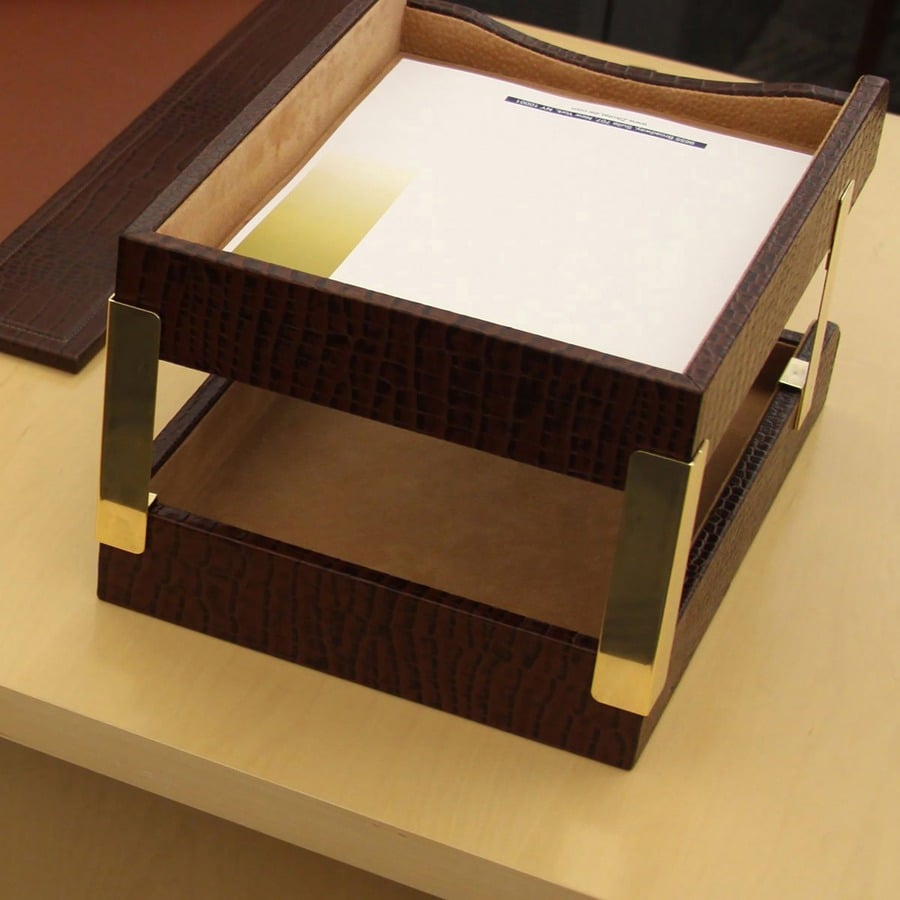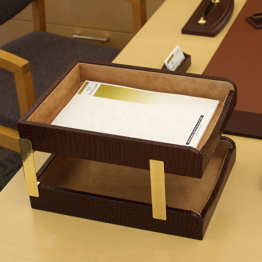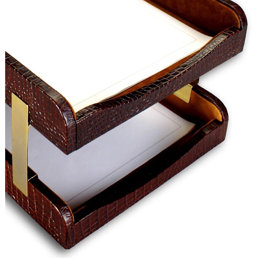 | Marketing Information | <p>Double Letter Trays feature a crocodile embossed design to add a smart, sophisticated look to your desk. Closed-front design prevents your letter-size documents from sliding out. The bottom is lined with soft velveteen to protect surfaces from scuffs and scratches. Stacking posts allow you to stack the trays for space-saving organization.</p> |