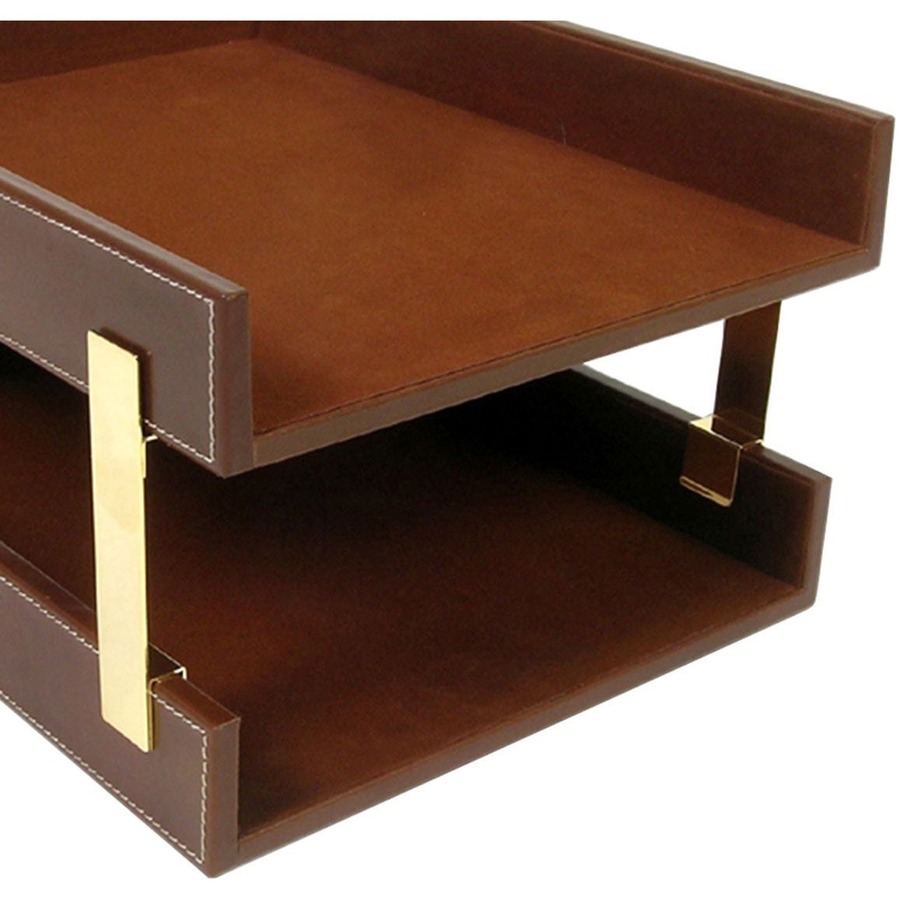 | Marketing Information | <p>Double Letter Trays feature an open-front design to provide easy access to your letter-size documents. Top-grain leather adds professional style to any work space. Soft velveteen protects surfaces from scuffs and scratches. Stacking posts allow you to stack the trays for space-saving organization.</p> |