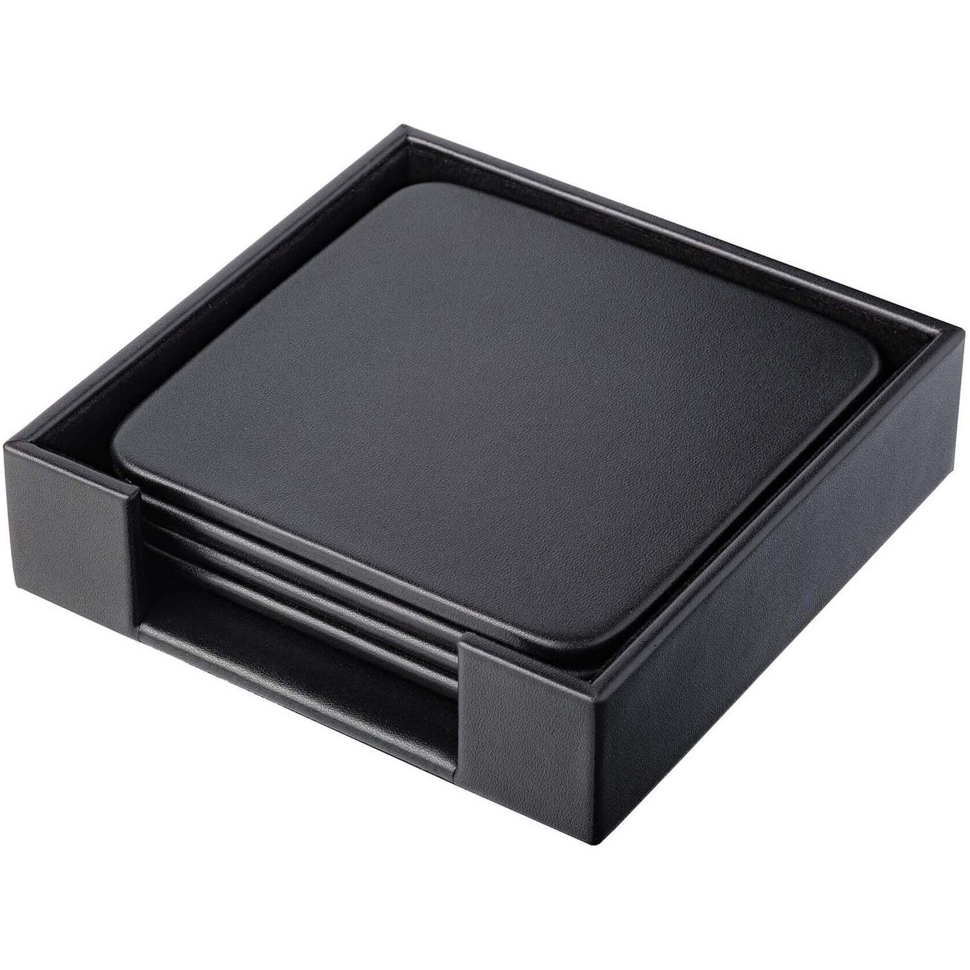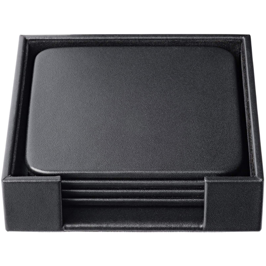 Dacasso Leather Coasters – Set of 4 Square with Holder – Square – Black – Top Grain Leather, Felt – 1Each