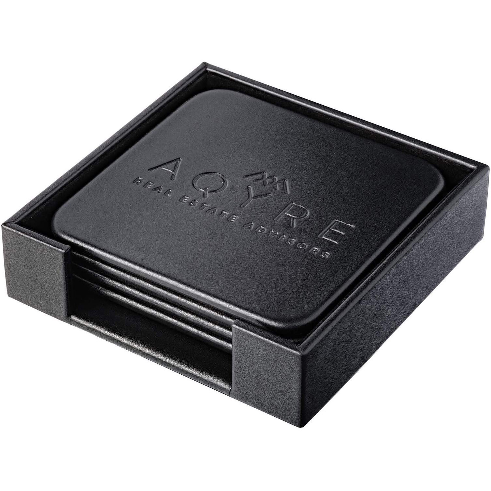 Dacasso Leather Coasters – Set of 4 Square with Holder