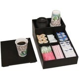 | Marketing Information | <p>Coffee Condiment Organizer features multiple compartments to organize coffee cups, lids, cream, sweetener, tea, stirrers and more. Removable lid can also be used as a beverage preparation surface. Faux-leather material provides a professional look in a cost-efficient design. Soft velveteen protects surfaces from scuffs and scratches.</p> |