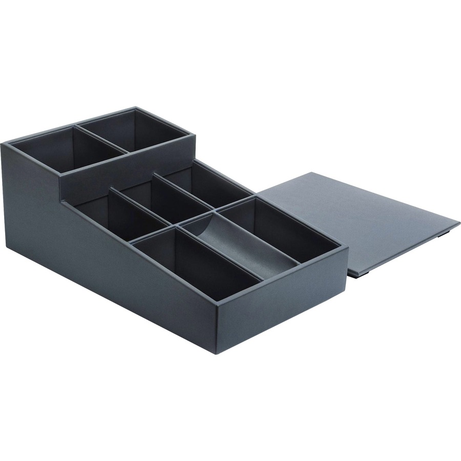 Dacasso Leatherette Coffee Condiment Organizer – Removable Lid – Gray – Velveteen, Leatherette – 1 Each
