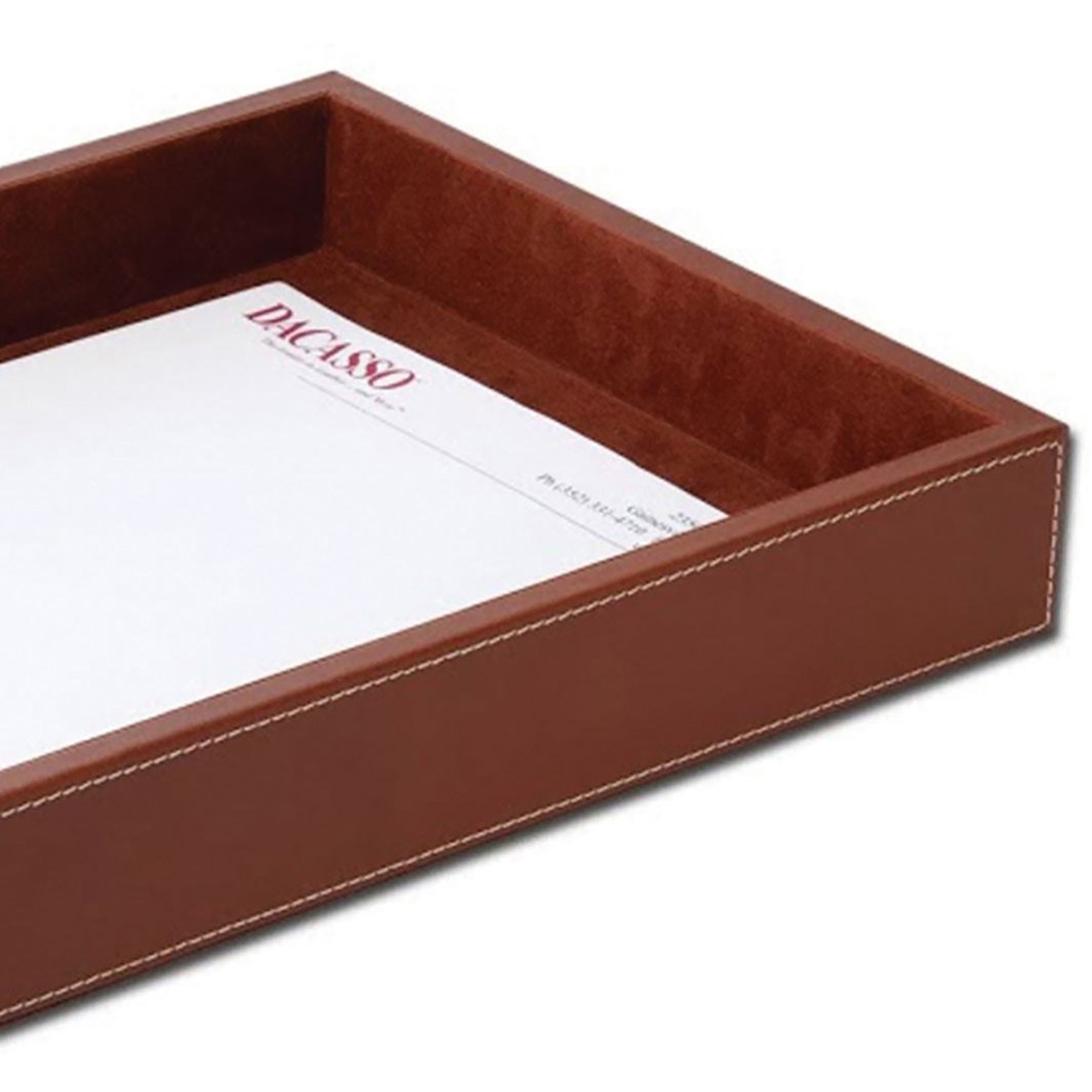 | Marketing Information | <p>Letter Tray is beautifully made with decorative stitching across the sides to make a subtle statement that works in any decor. Open-front design provides easy access to your documents. Top-grain leather adds professional style to any work space. Soft velveteen protects surfaces from scuffs and scratches. Letter-size tray can be used with Dacasso stacking posts (not included) for space-saving organization.</p> |