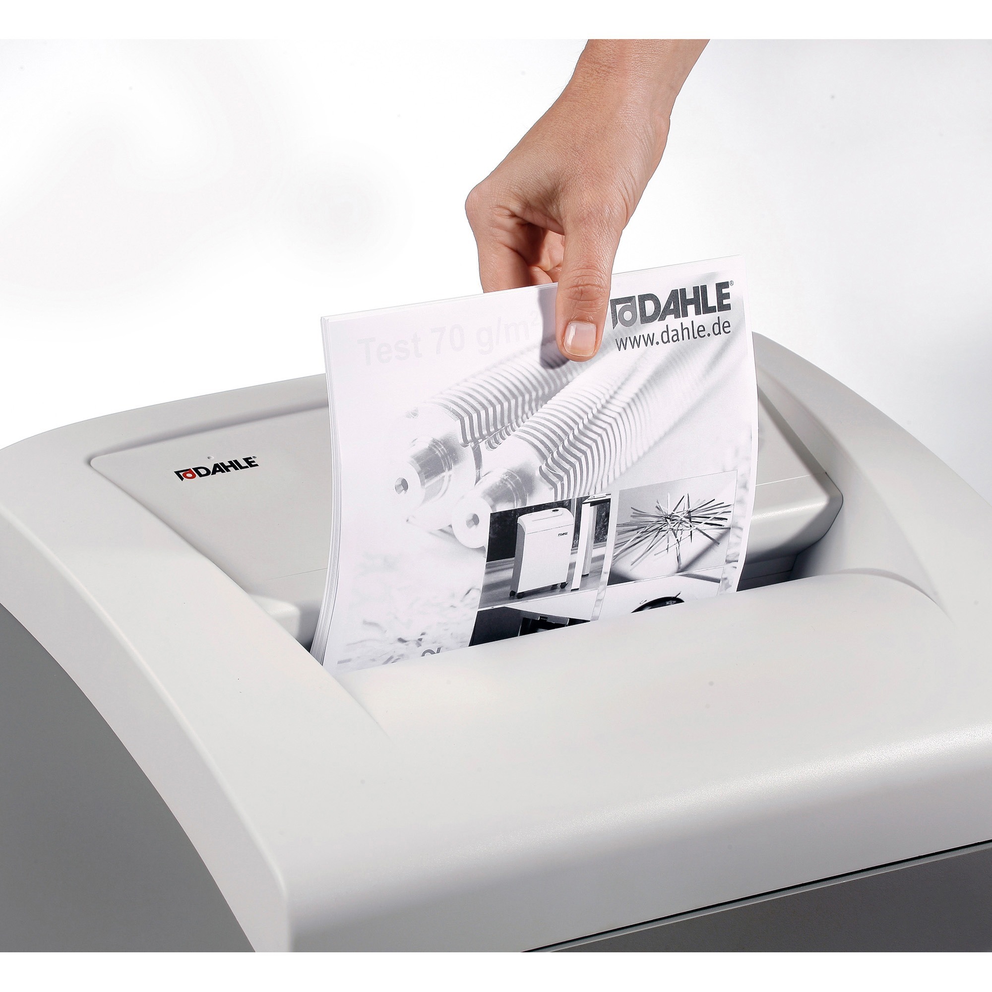 Dahle 40606 Oil-Free Paper Shredder w/Jam Protection – Continuous Shredder – Strip Cut – 40 Per Pass – for shredding Staples, Paper Clip, Credit Card, CD, DVD – 0.250″ x 0.250″ Shred Size – P-2 – 26 ft/min – 16″ Throat – 45 gal Wastebin Capacity – 2982.80 W – Gray
