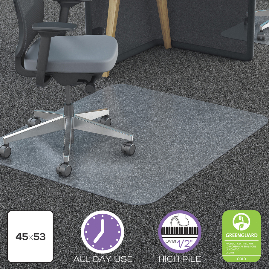 Deflecto EconoMat Chair Mat – Carpeted Floor – 53″ Length x 45″ Width x 62.5 mil Thickness – Rectangle – Polycarbonate – Clear