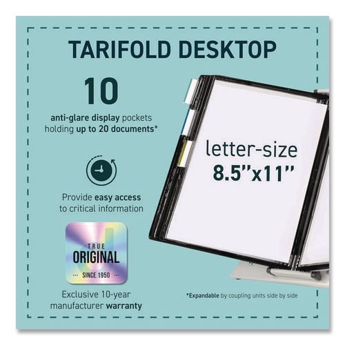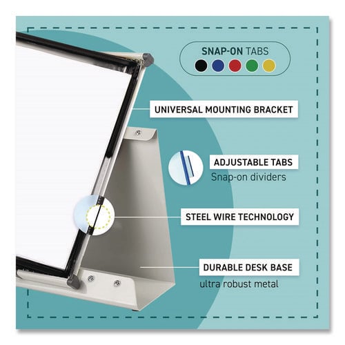 Whether at your desk, in a workshop or at a workstation, maximize your productivity by placing important information at your fingertips. Includes desk base unit, one universal mounting bracket, required hardware and wire reinforced pockets. Snap on index tabs with color-coded inserts helps find information quickly. Great for production workshops, factories, warehouses, machines, manufacturing lines, and assembly stations.Note: This is a non-returnable item.
