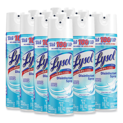 Disinfectant Spray, Crisp Linen, 19 oz Aerosol Spray, 12/Carton