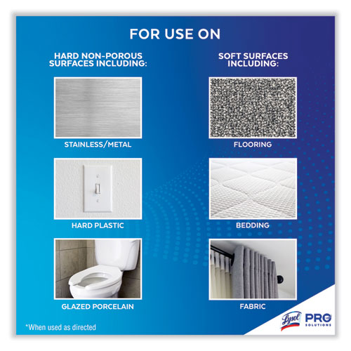 Get maximum versatility with minimal effort with Lysol Disinfectant Spray that’s safe to use on hard and soft surfaces. Lysol kills 99.9% of viruses and bacteria, including the virus that causes COVID-19 in 15 seconds, as well as cold and flu viruses when used as directed. Help protect high-traffic areas and high-touch surfaces, including desks, bathrooms, doorknobs, and railings. Deliver hospital-type disinfection on to soft surfaces, including upholstery, curtains, sofas, mattresses, and cushions. Meet customer and staff expectations around disinfection. Simply spray and let air dry.