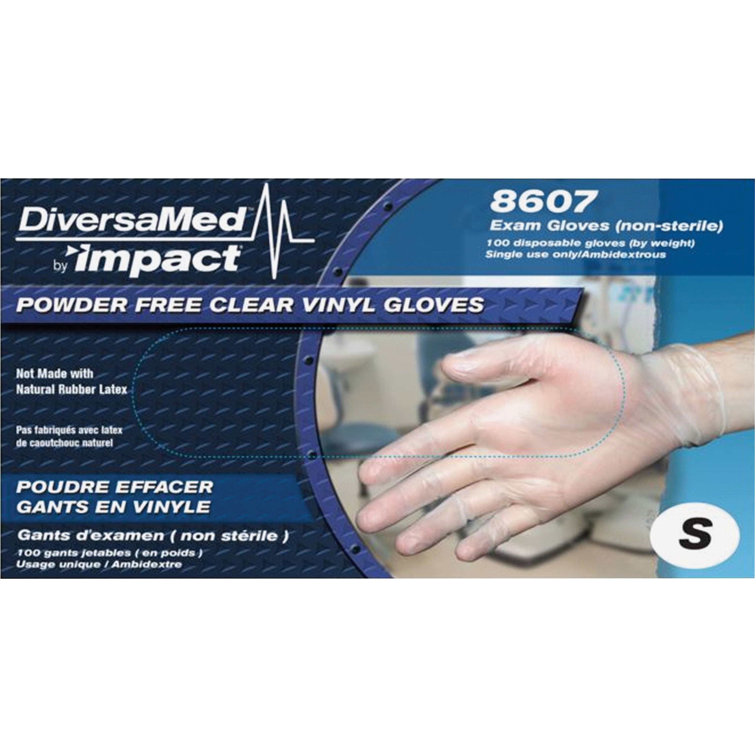 DiversaMed Disposable Powder-free Medical Exam Gloves – Small Size – Unisex – For Right/Left Hand – Clear – Powder-free, Disposable, Beaded Cuff – For Medical, Dental, Laboratory Application – 100 / Box