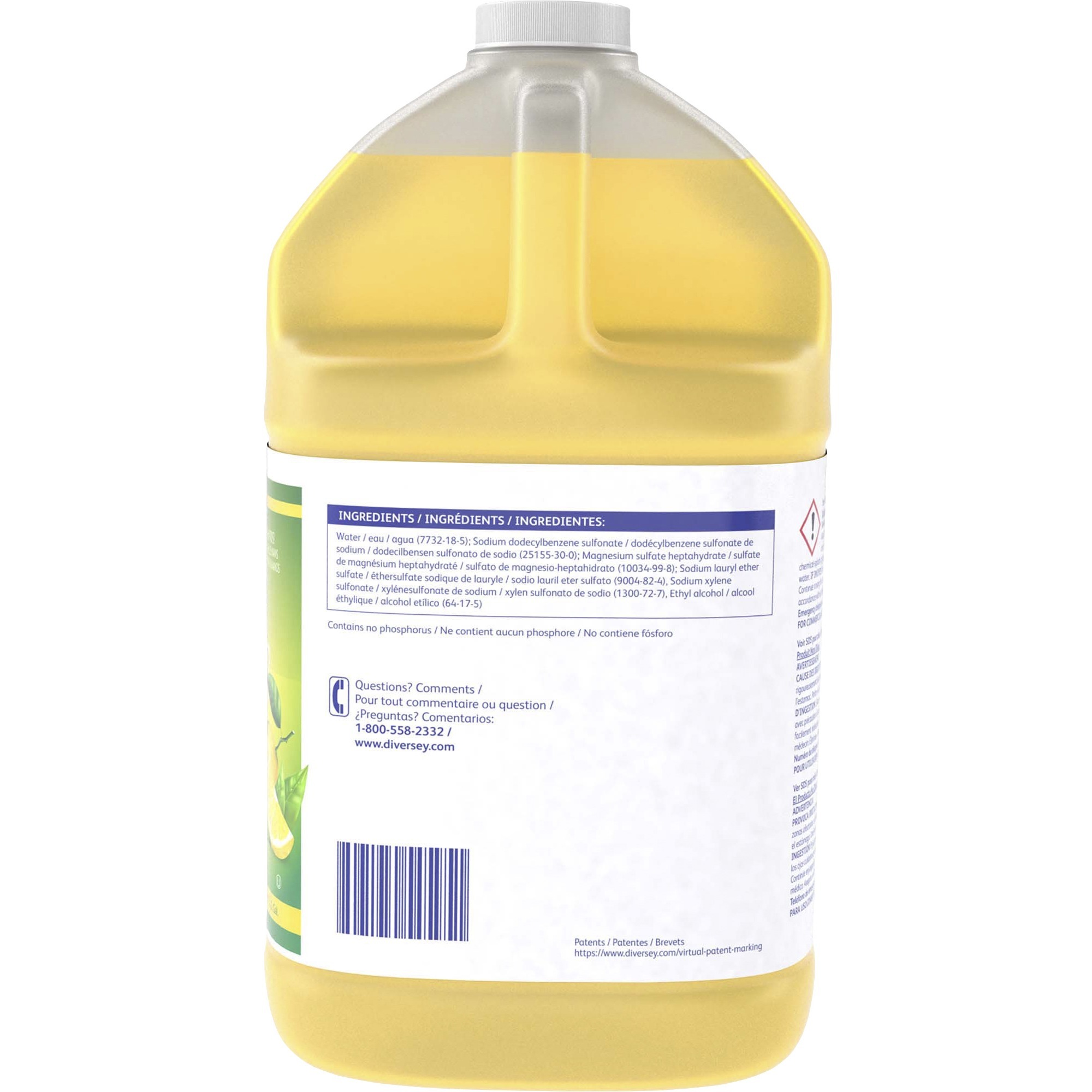 Diversey Limon Pot And Pan Detergent – Ready-To-Use/Concentrate Liquid – 128 fl oz (4 quart) – Lemon Fresh Scent – 2 / Carton – Yellow